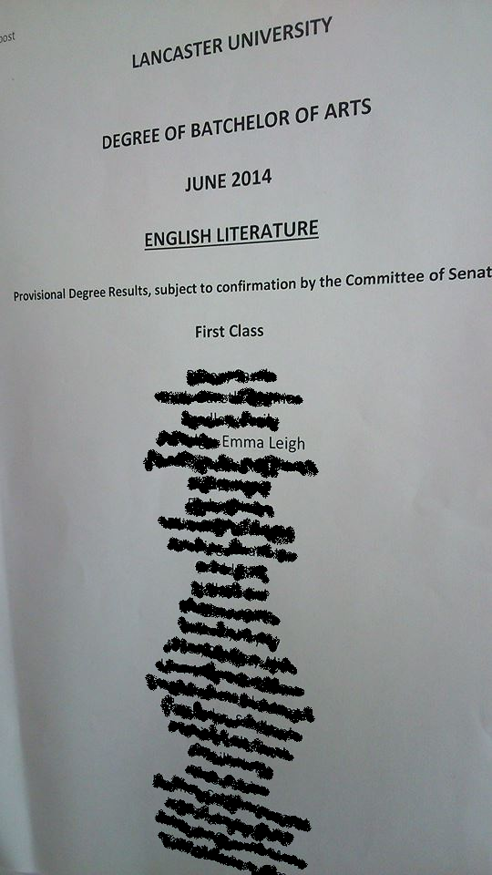 Last Friday I, with shaking hands, jostled through a small group crowding around a couple of sheets of A4 pinned up on a window that meant so much considering how seemingly innocuous they appeared. Degree classification results. I was overwhelmed to discover my name there under the First Class Honours section. I still can’t really believe it; I don’t think I will until I get my final transcript and official certificate. But that’s it, three years of work, or ten years (if you count the additional seven clocked up to get into university in the first place), and this is the final result.