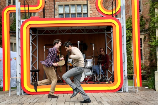 Multi-talented would probably be the word I would use for the ensemble cast. One of the smallest dramatis personae in Shakespeare’s entire ouevre, this nine-person cast are all musically talented, expected to be able to play the drums and sing as well as they can recite their lines. In fact, music becomes a vital tool in the production which sees the characters grapple with sixties music and clothing in order to tell the story of Valentine and Silvia and Proteus and Julia. Love letters between characters become records, yes, vinyls are passed from character to character and played out on the record player placed centre-stage whilst the band behind it play the song for the audience to hear. Very fitting considering the time period the play finds itself occupying.