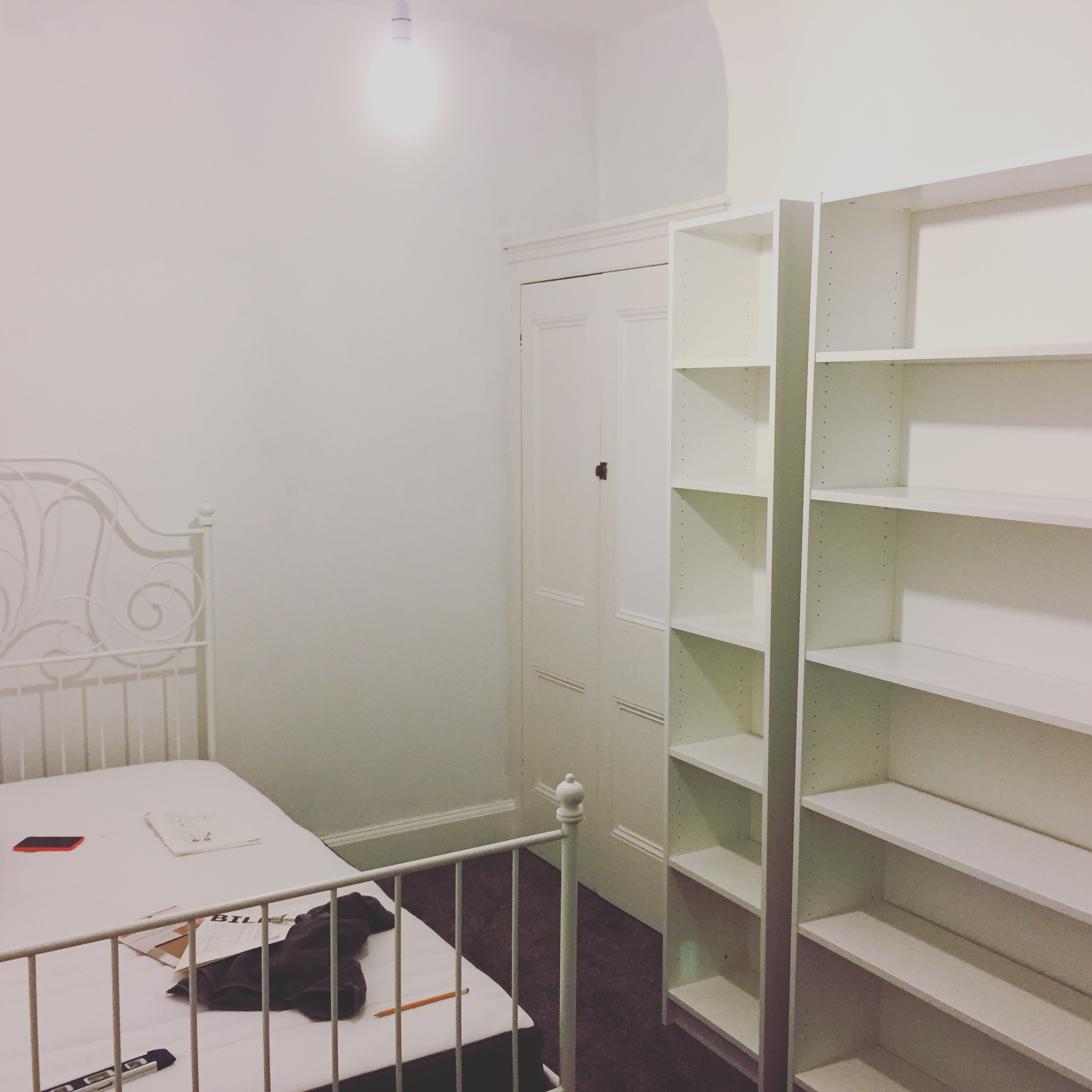 As I mentioned in previous posts, I have got a job and moved to Liverpool to live with my friend, Liz. Since then I have been staying in the guest bedroom whilst my bedroom was pai16nted, carpeted, and furnished. Although there are still odd bits of painting here and there, I’ve mostly moved all of my things into the room now since it is officially decorated and furnished. I am officially sleeping in a double bed again and, god, it’s comfy. For the first time in my life I also have proper bookshelves in my room (something I’ve always wanted) and a desk (a beautiful one at that) so I’m very pleased with how it looks. This has also given me the chance to work out what I do and don’t like when it comes to painting and carpets and furniture preferences and colour schemes – I’m making it sound like a truly thrilling ride, I know. I never thought I’d get excited about wardrobe storage system options but, yeah, that happened. I decided to share a quick ‘before’ and ‘after’ because why not?